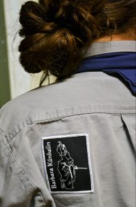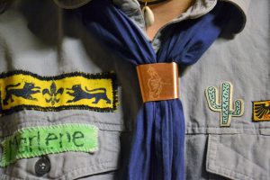 Die Pfadfinderinnen des Stammes Barbara Künkelin erhalten bei ihrer Aufnahme in den Stand des Knappen einen Halstuchring aus Kupfer, der die Silhouette unserer Namensgeberin zeigt. Zudem tragen wir auch ein Stammesabzeichen auf der linken Schulter.